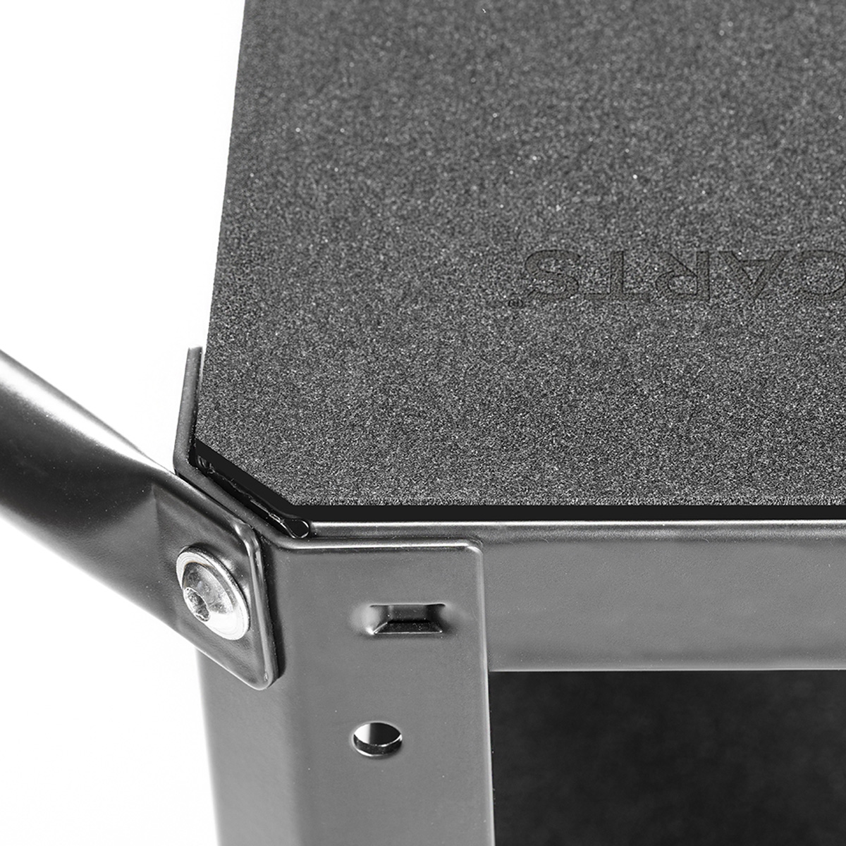 - 2 black fabric mats with ConeCarts® logo embroidered on them for the lower shelves which guarantee greater protection of the cart and tools.