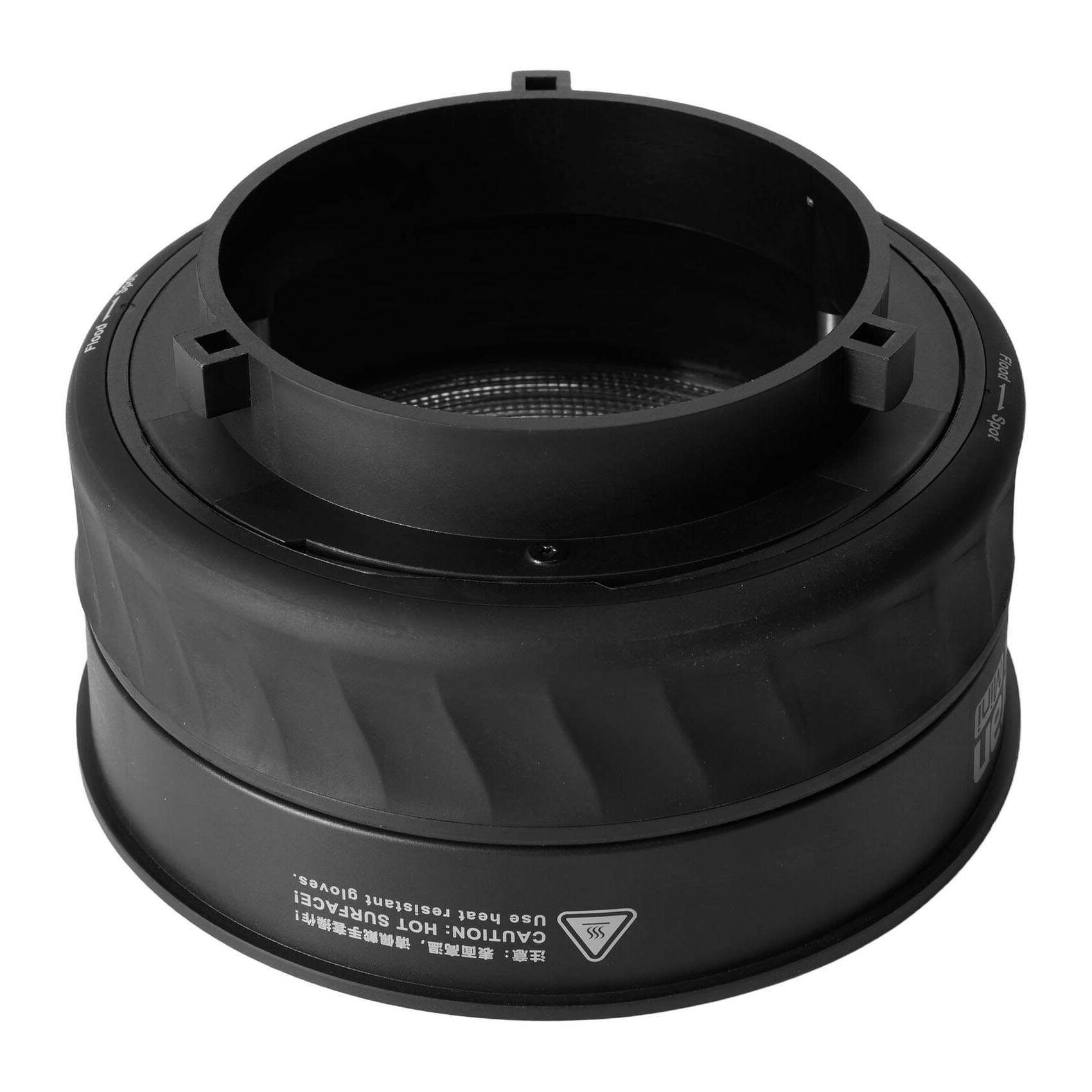 Optická konstrukce s 4,7 skleněnou čočkou přispívá k čistšímu a stabilnějšímu tvarování světla. Výsledkem je soustředěnější výstup s plynulým náběhem světla od středu k okrajům, což je důležité zejména při natáčení na citlivé kamery, kde jsou nežádoucí ostré přechody nebo nekontrolované odrazy okamžitě viditelné. Součástí balení jsou čtyřdílné klapky, které umožňují další formování paprsku a přesné ořezání světla v záběru.
