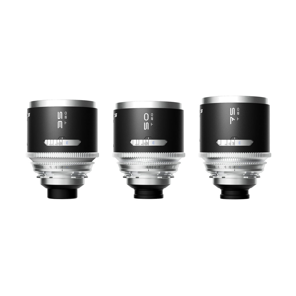Praktické detaily zahrnují 80 mm přední průměr s 77 mm závitem filtru, což usnadňuje použití standardních filtrů a matte boxů; krátké minimální zaostření 0,49 m u 35/50 mm a 0,67 m u 75 mm umožňuje větší kreativitu v blízkých záběrech. Sada je rovněž koncipována pro odolné nasazení s kompaktní, robustní konstrukcí vhodnou do studií i terénu. (Zdroj informací a specifikace z katalogových popisů produktu.)