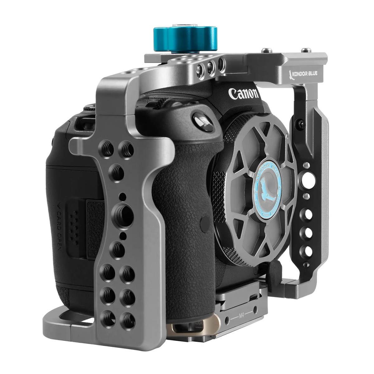 Kondor Blue Canon R5/R6/R Arca Cage je profesionální kamerový cage navržený pro náročné filmové a broadcast produkce využívající bezzrcadlové těla Canon R5, R6 a R. Tento robustní, přitom lehký cage poskytuje kompletní ochranu těla kamery a současně přináší modulární montážní řešení pro rychlé nasazení do produkčního workflow — od run-and-gun natáčení přes studiové sety až po broadcastové ENG/EFP aplikace.