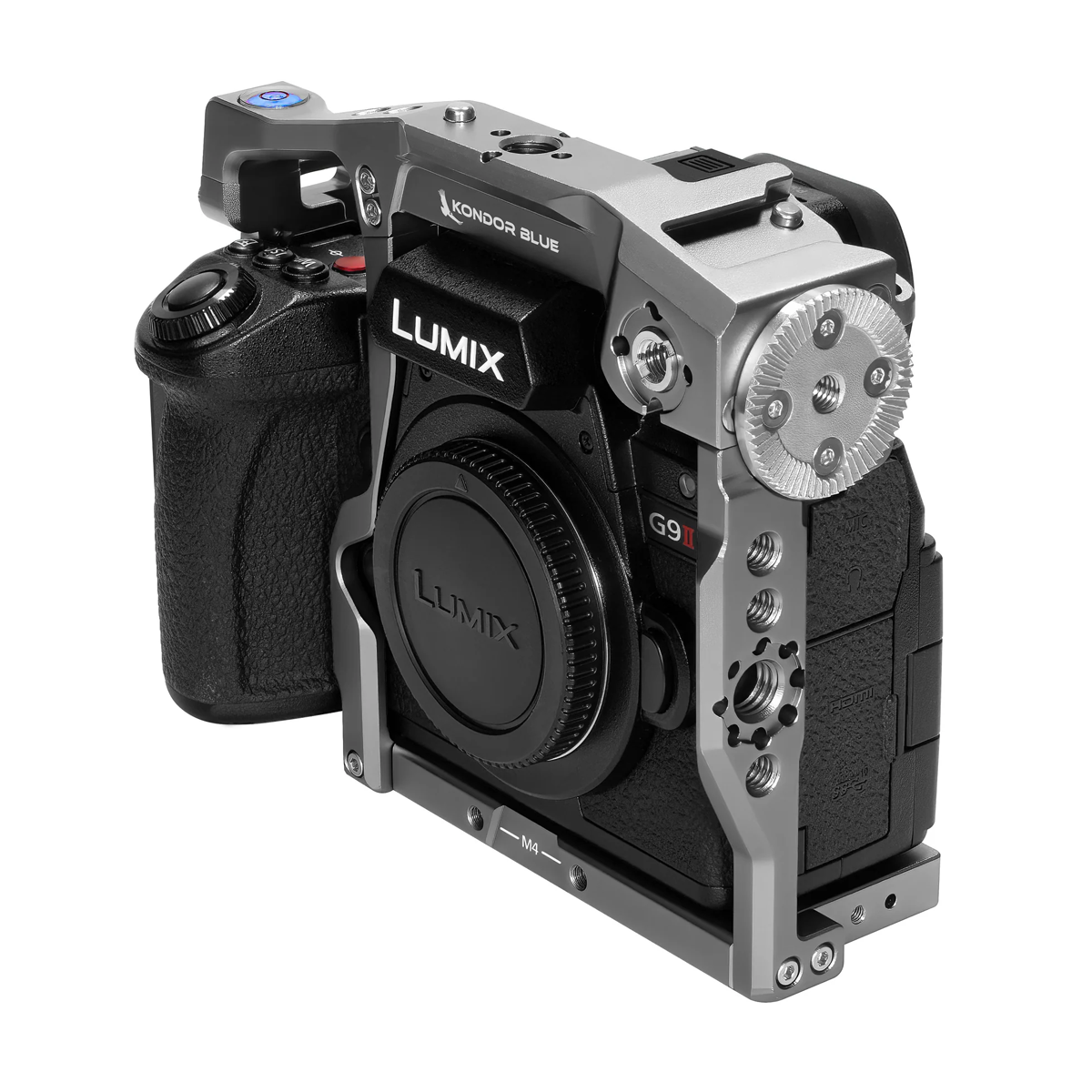 Kondor Blue Panasonic LUMIX G9 II Cage poskytuje profesionálním uživatelům robustní, flexibilní a ergonomické řešení pro maximální výkon v terénu i na place. Díky precizní konstrukci a širokým možnostem rozšíření je to ideální volba pro produkční společnosti, kameramany a filmaře, kteří požadují spolehlivé a dlouhodobě použitelné rigování pro svůj Panasonic LUMIX G9 II.