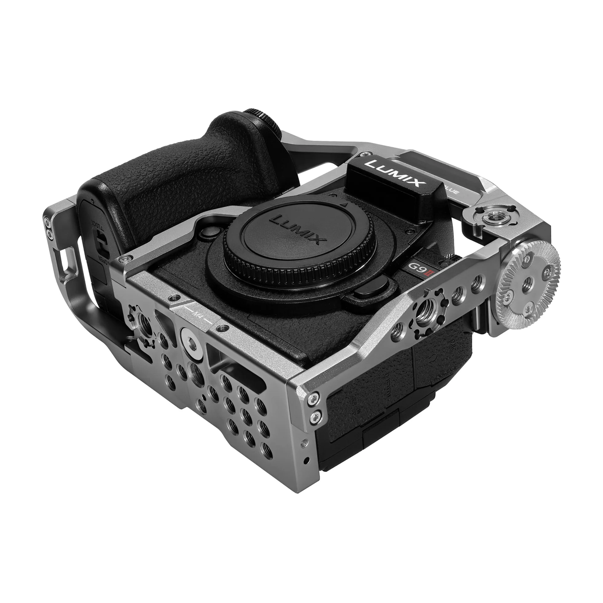 – Přesné uchycení a ochrana: CNC frézovaný rám z odlehčené hliníkové slitiny pevně fixuje Panasonic LUMIX G9 II, chrání tělo kamery před nárazy a současně zajišťuje oporu při montáži dalších příslušenství.