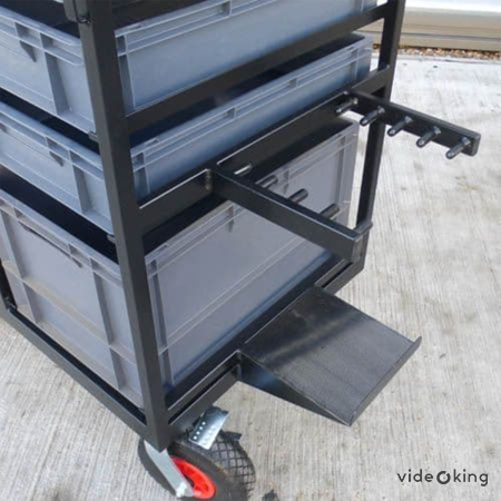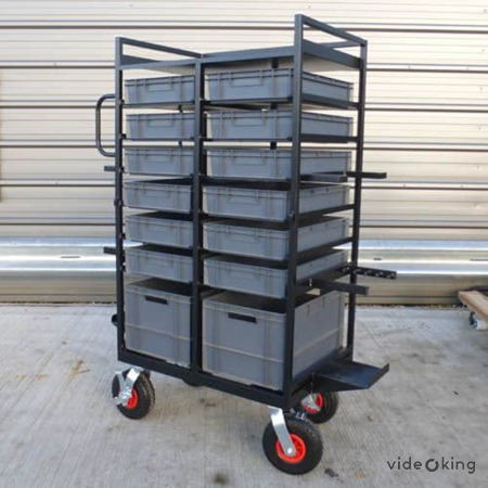 Trolley pojme až osm C-Stand stativů standardní velikosti, uspořádaných vertikálně nebo úsporně pro stabilitu při pohybu. Konstrukce umožňuje rychlé naložení a vyložení stojanů jediným pohybem, což výrazně urychluje přestavby mezi scénami. Kolečka s vysokou nosností a brzdami poskytují stabilitu i na nerovném povrchu.