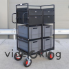 Odolný ocelový rám v kombinaci s nárazuvzdorným povrchem zaručuje dlouhou životnost i v náročných produkčních prostředích. Heavy-duty kolečka s brzdami umožňují hladký pohyb po různých površích a stabilní zajištění v pracovní poloze. Nízké těžiště a ergonomické madla usnadňují manipulaci i při plném zatížení.