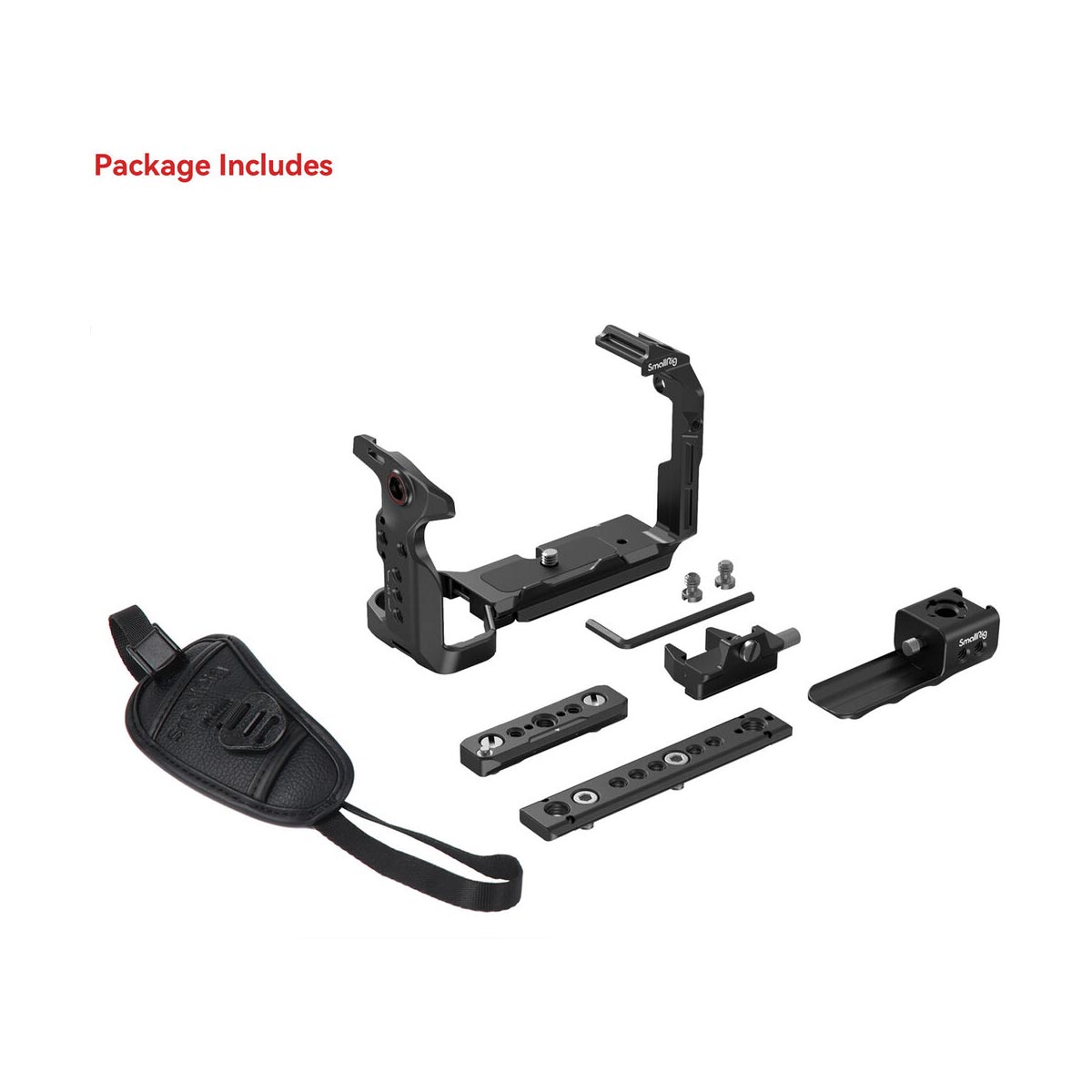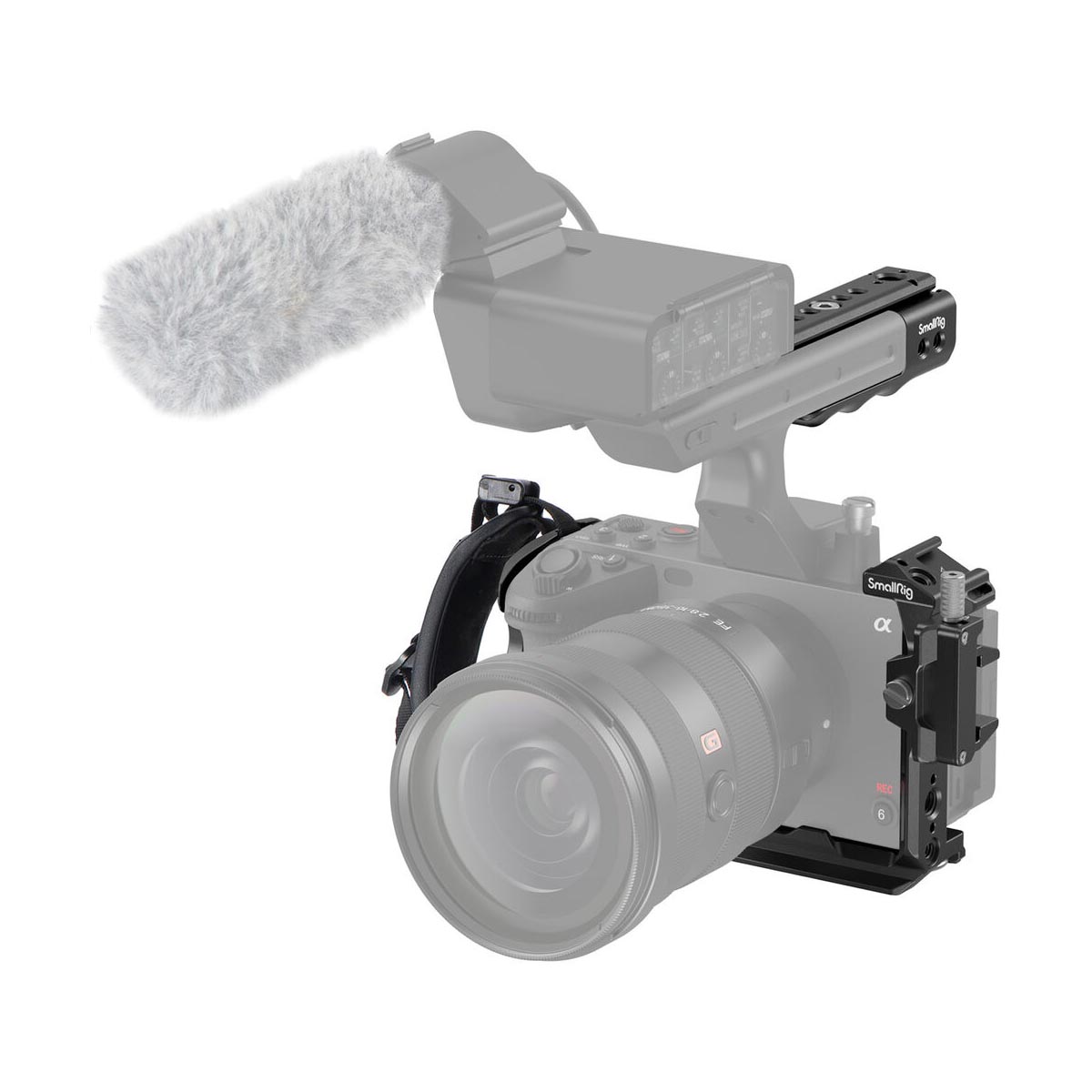 – Obsah balení (standardní konfigurace): částečná klec, top handle s XLR rozšířením, HDMI clamp, dvě NATO lišty, hand strap, montážní šrouby (včetně 3×1/4-20).