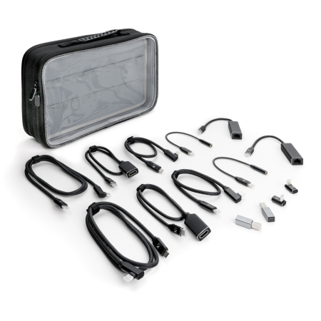 – Obsah kitu: mix USB-C kabelů různých délek a typů (napájení/datové), připojovací adaptéry pro běžné produkční potřeby (v závislosti na variantě kitu)